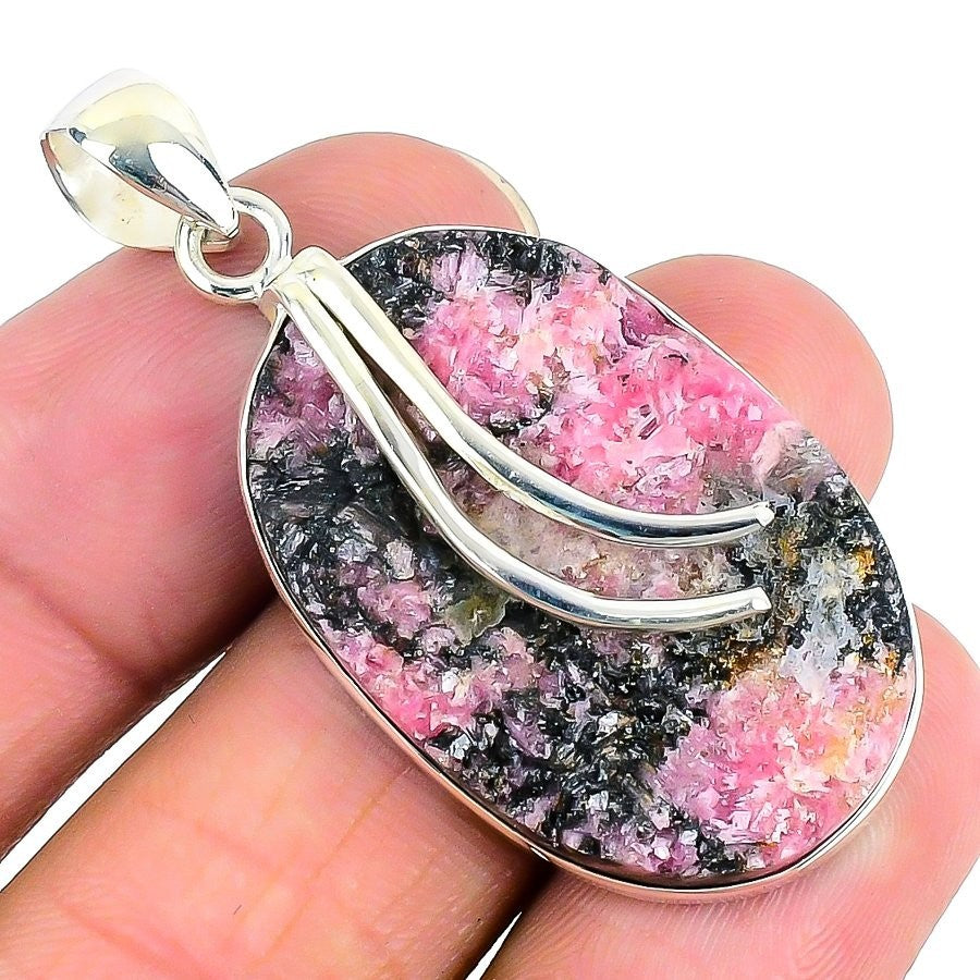 Rhodonite Druzy Gemstone Bezel Handcrafted Artisan Pendant Solid Sterling Silver