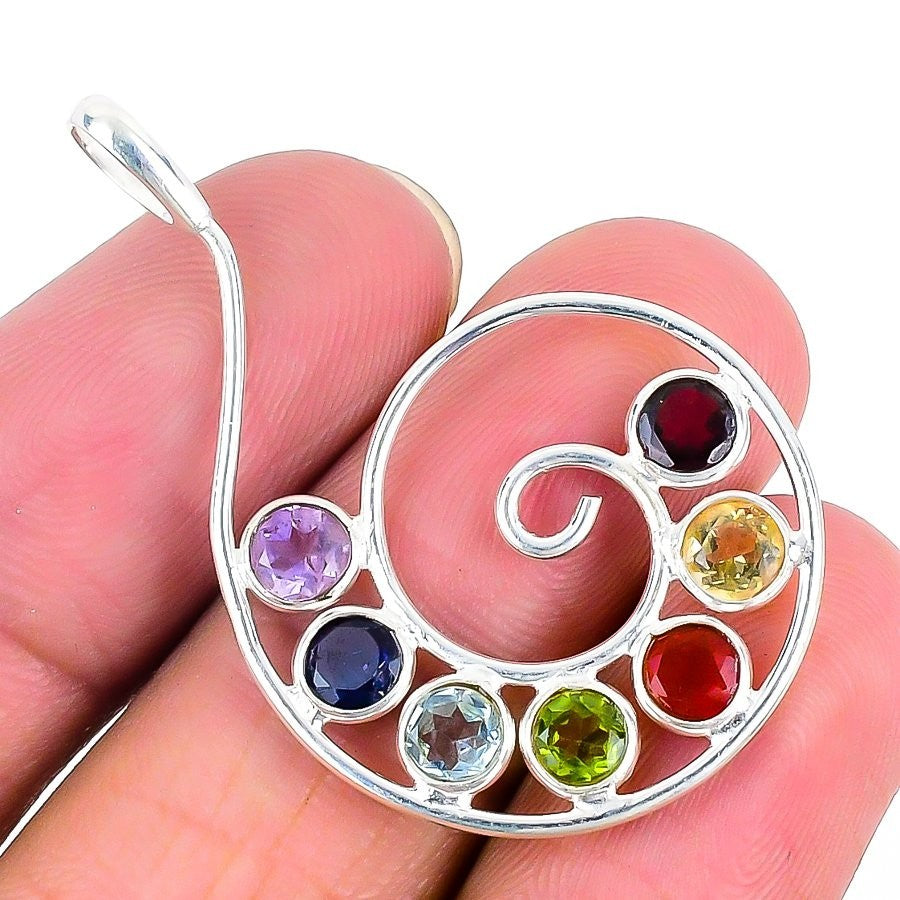 Seven Chakra Gemstone 925 Silver Daughter Gift Mother Birthday Wedding Pendant
