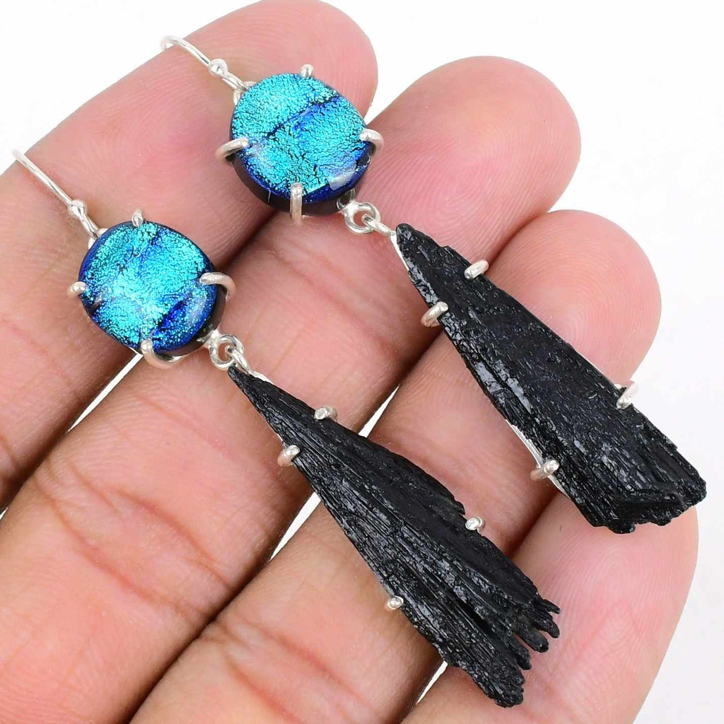 Natural Kyanite New Dangling Throat Chakra Earrings Jewelry 925 Sterling Silver