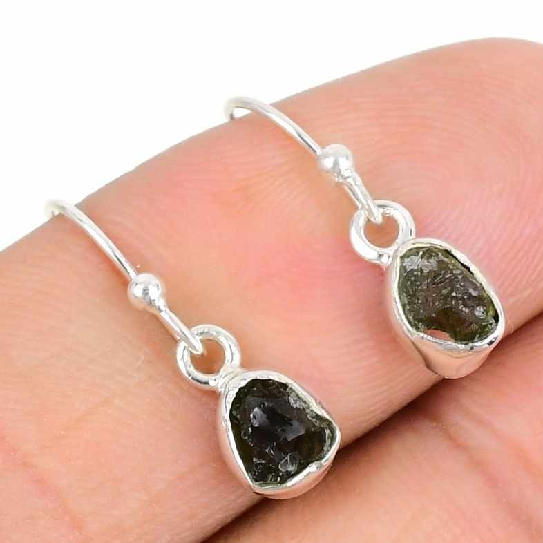 Moldavite Stone 925 Silver Unique Wedding Drop Boho Anniversary Earrings Jewelry