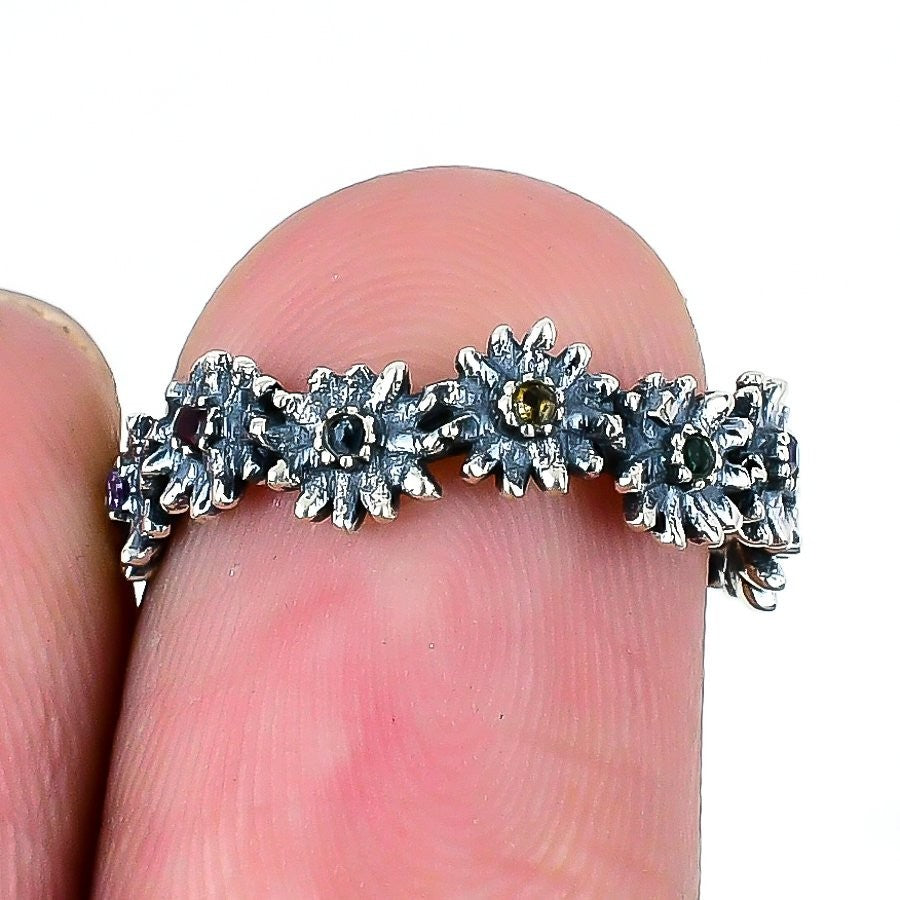 Natural Smoky Topaz Sterling Silver Artisan Wife Statement Boho Ethnic Ring US 7