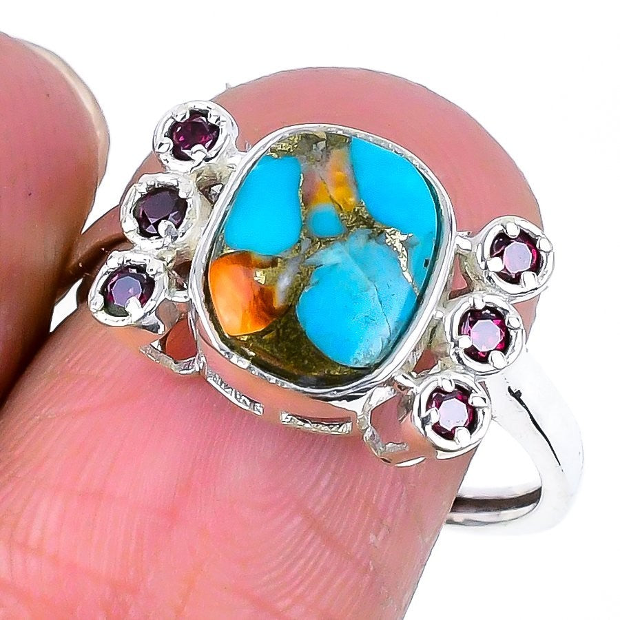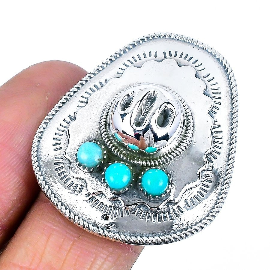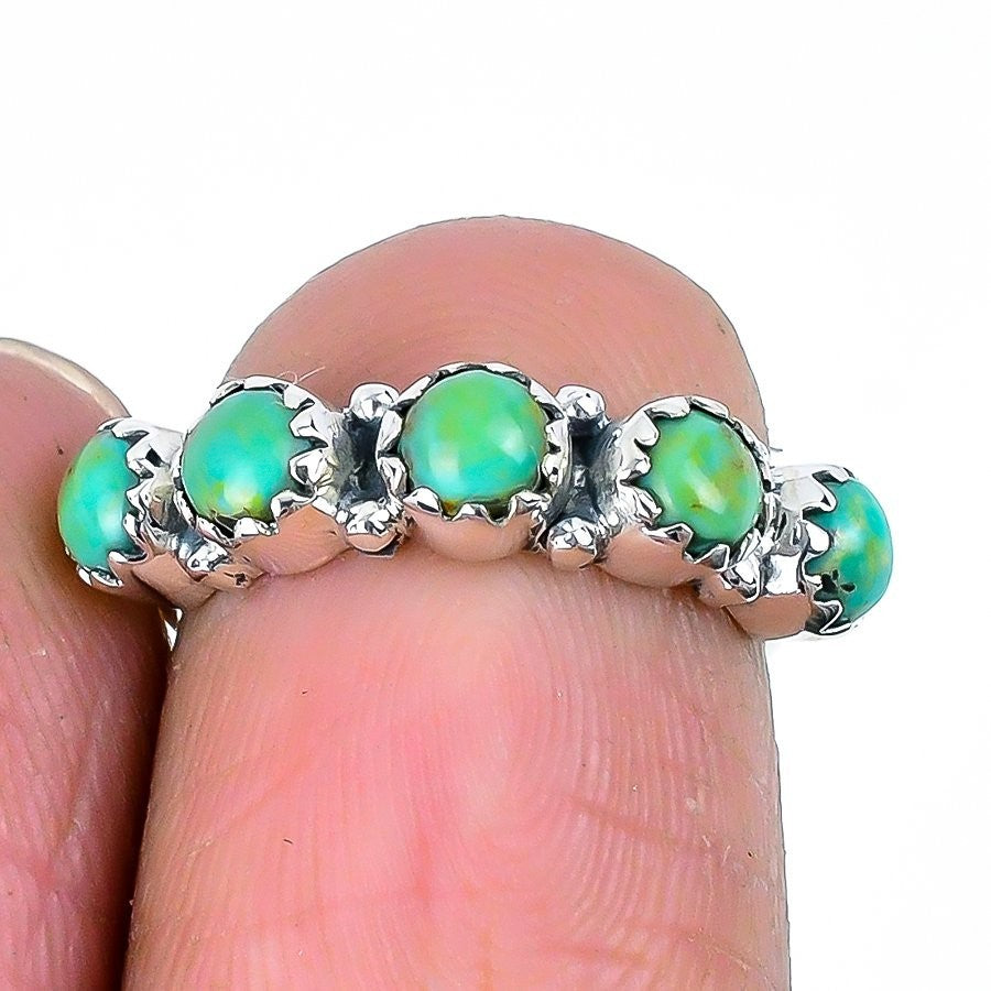 Daughters Day Deal Natural Turquoise Cluster Birthday Ring Size 10 925 Silver
