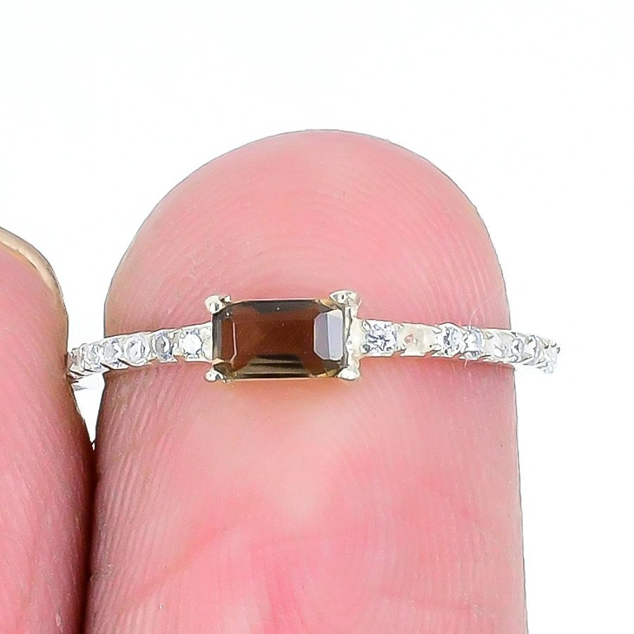 Smoky Topaz Gemstone 925 Sterling Silver Sister Birthday Cluster Engagement Ring