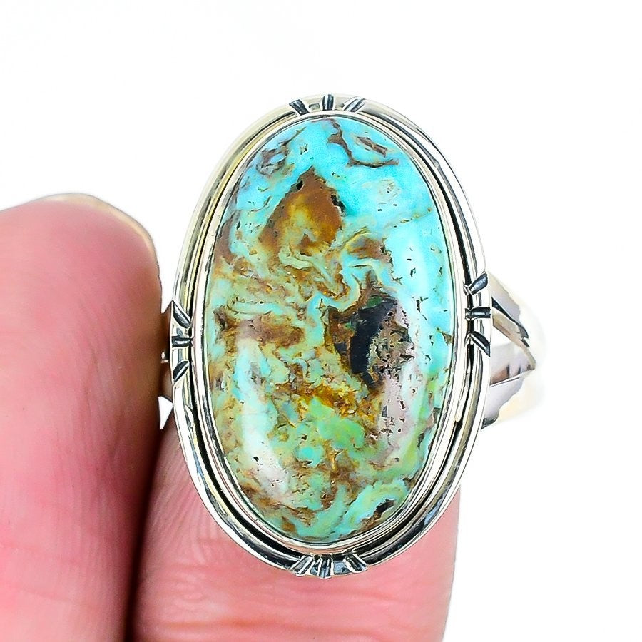 Natural Arizona Turquoise Solid Sterling Silver Birthday Statement Ring Size 6.5
