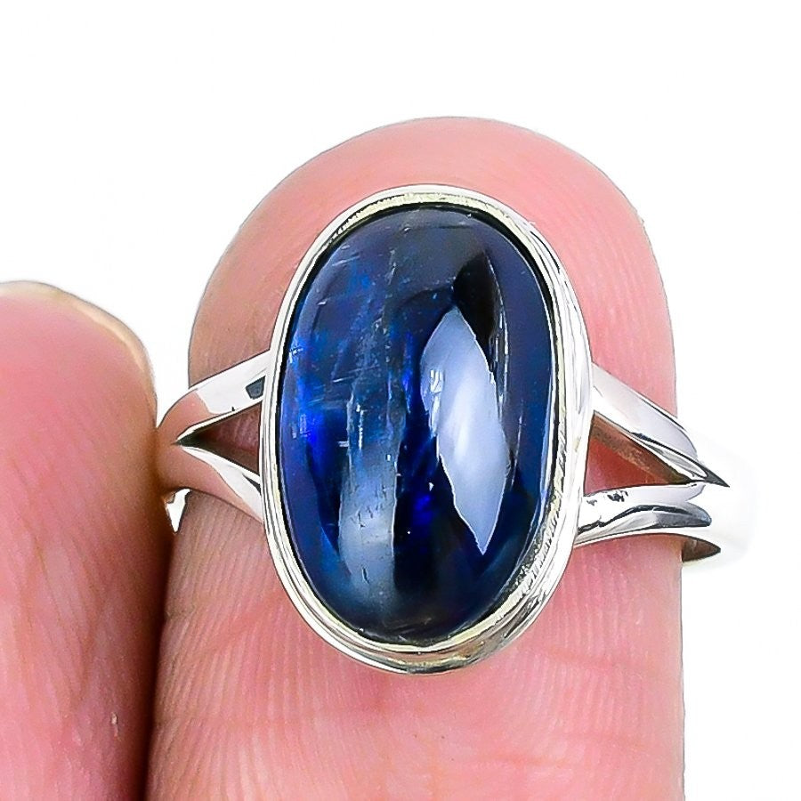 Blue Kyanite Gemstone 925Ā SolidĀ Silver Engagement Cluster Ring Jewelry Size 7.5
