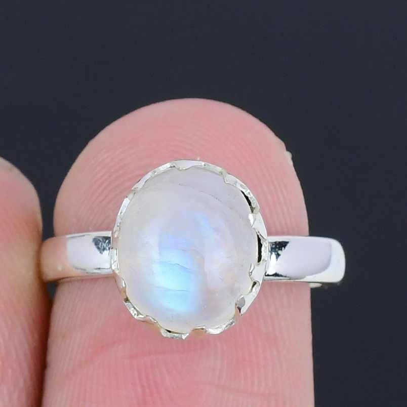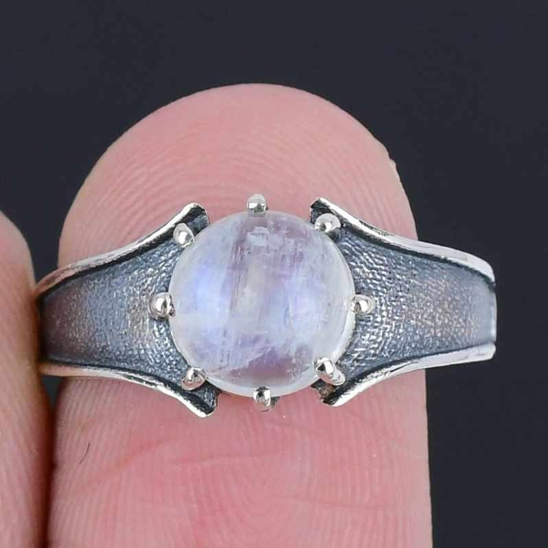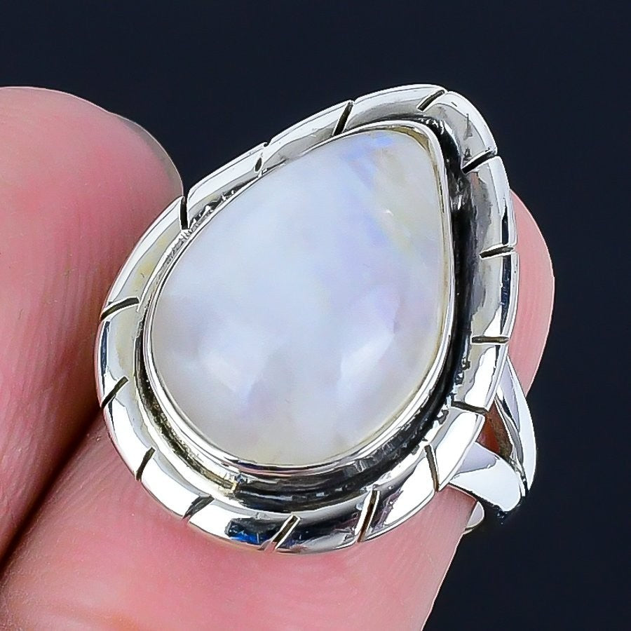 Rainbow Moonstone Stone Sterling Silver Cluster Anniversary Mother Ring Size 6.5