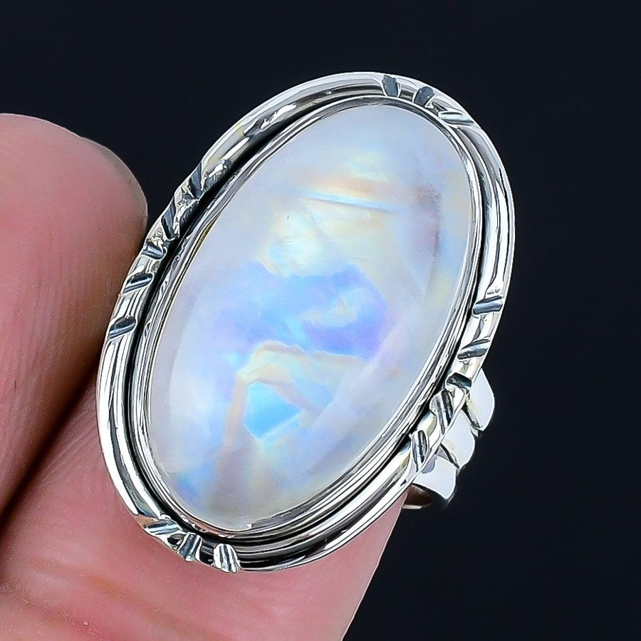 Rainbow Moonstone Gemstone 925 Sterling Silver Artisan Handcrafted Cluster Ring