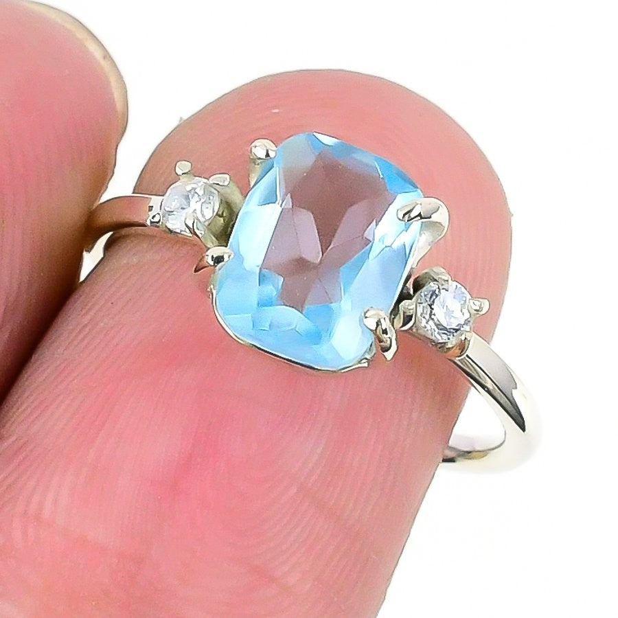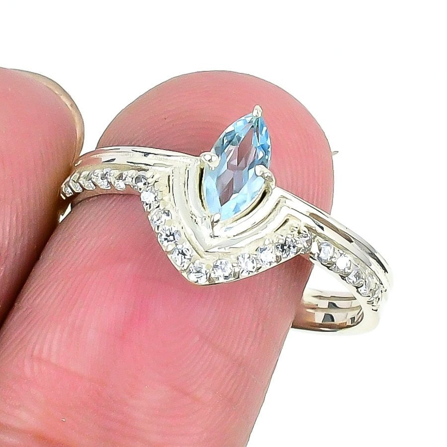 Natural Swiss Blue Topaz 925 Silver Handmade Cluster Wife Unique New Ring Size 8