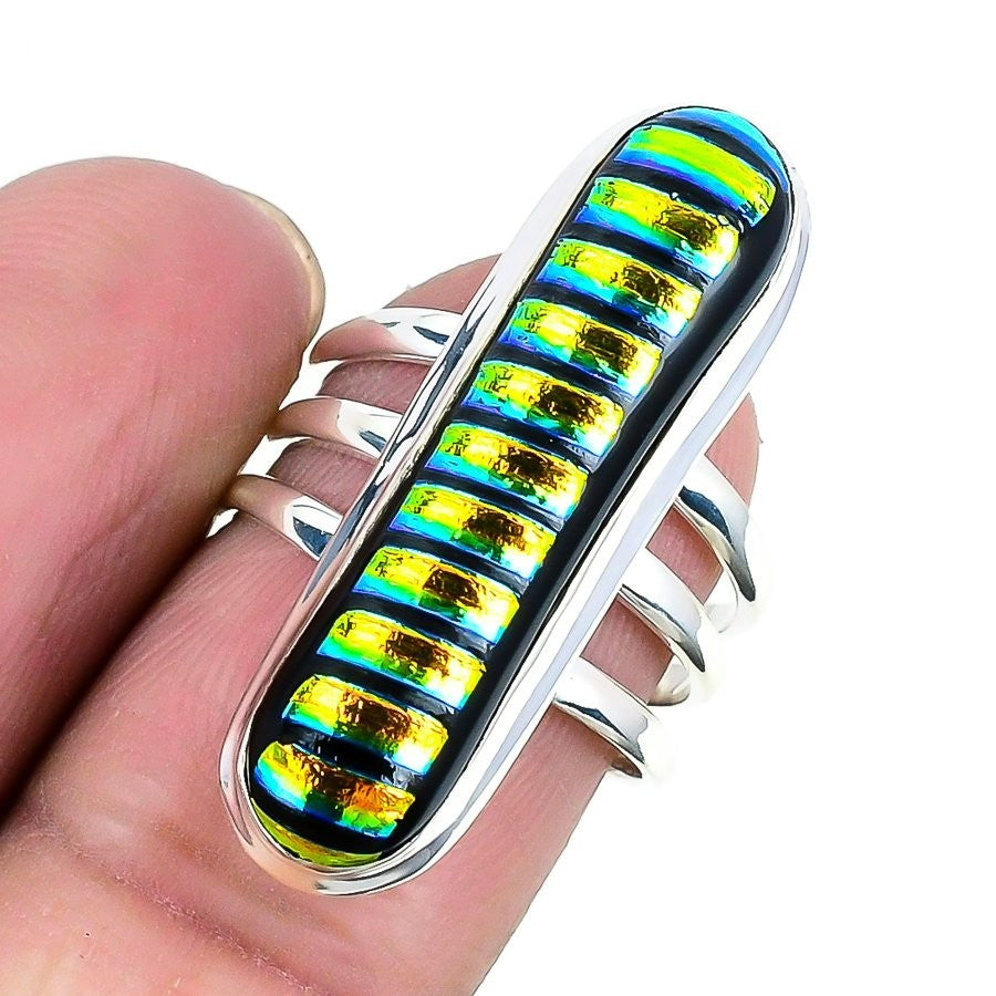 Natural Mexican Dico Glass Sterling Silver Cluster Trendy Ring Jewelry Size 7.5