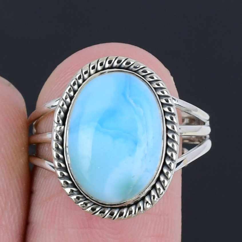 Daughters Day Deal Natural Larimar Cluster Handcrafted Ring Jewelry Solid Silver