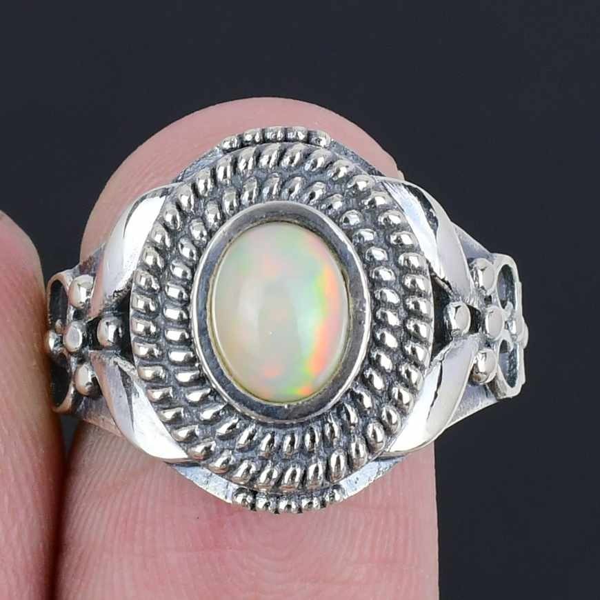 Natural Ethiopian Opal Solid Sterling Silver Wife Cluster Ring Jewelry Size 8