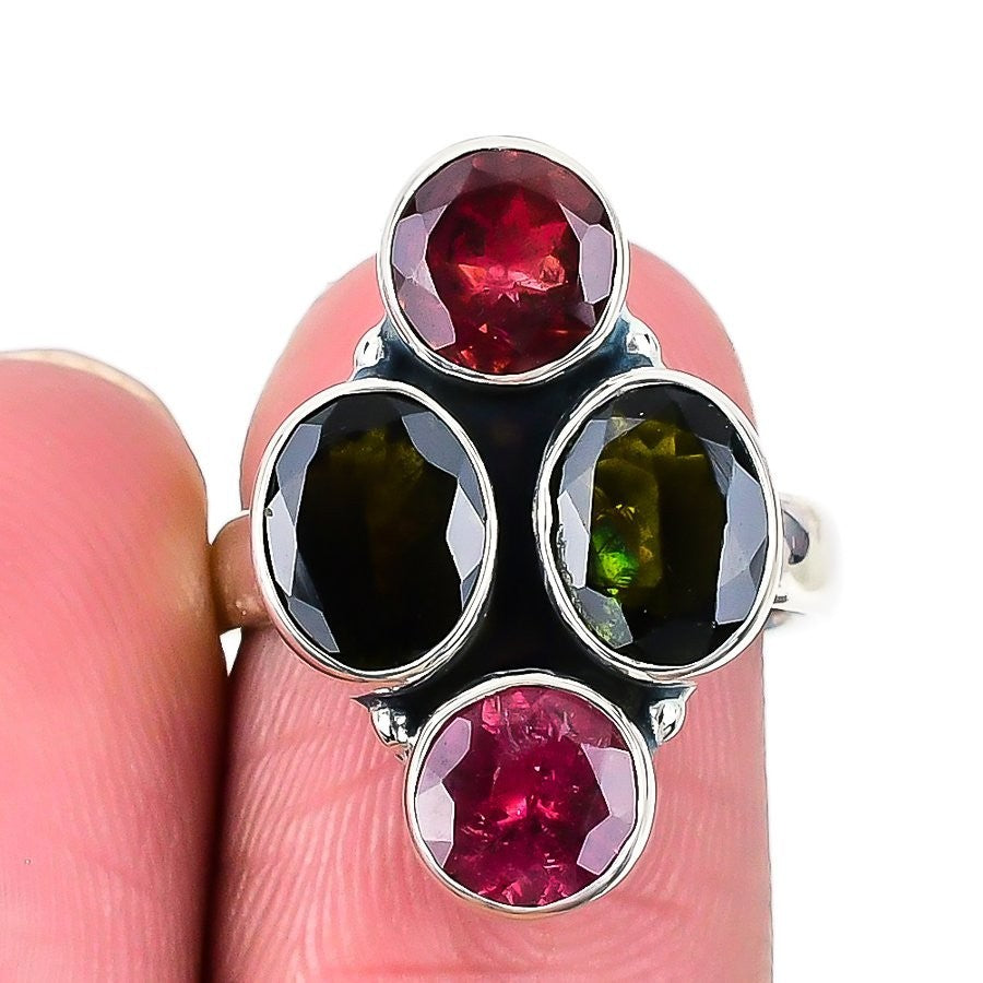 Green Tourmaline Stone Statement Daughters Day Ring Jewelry 925 Silver US 5.5