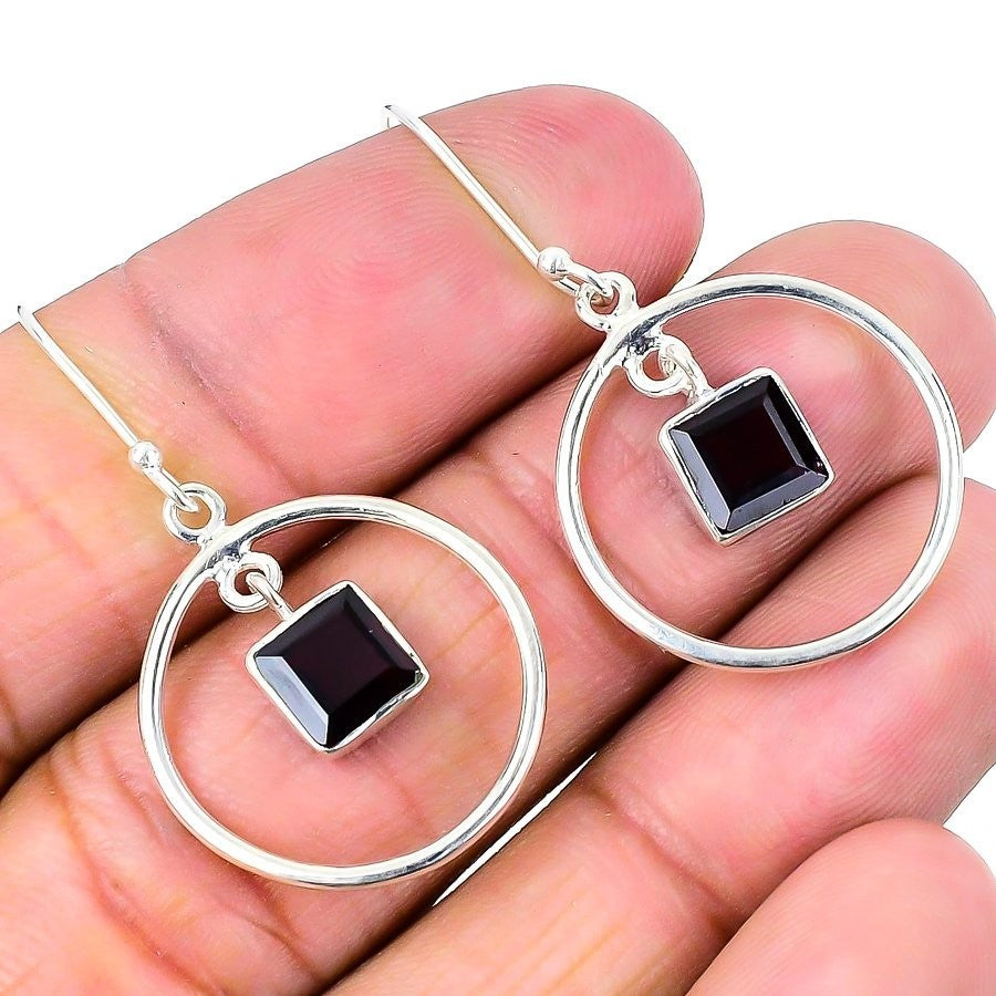 Black Spinel Stone Dangle Drop Elegant Hook Art Deco Earrings Size 8 925 Silver