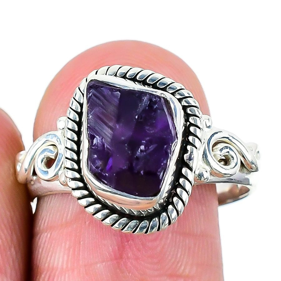 Amethyst Rough Gemstone Statement Unique Daughter Ring 925Ā SolidĀ Silver US 7.5