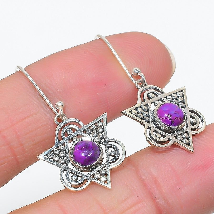 Copper Purple Turquoise Gemstone 925Ā SolidĀ Silver New Drop Hook Earrings Jewelry