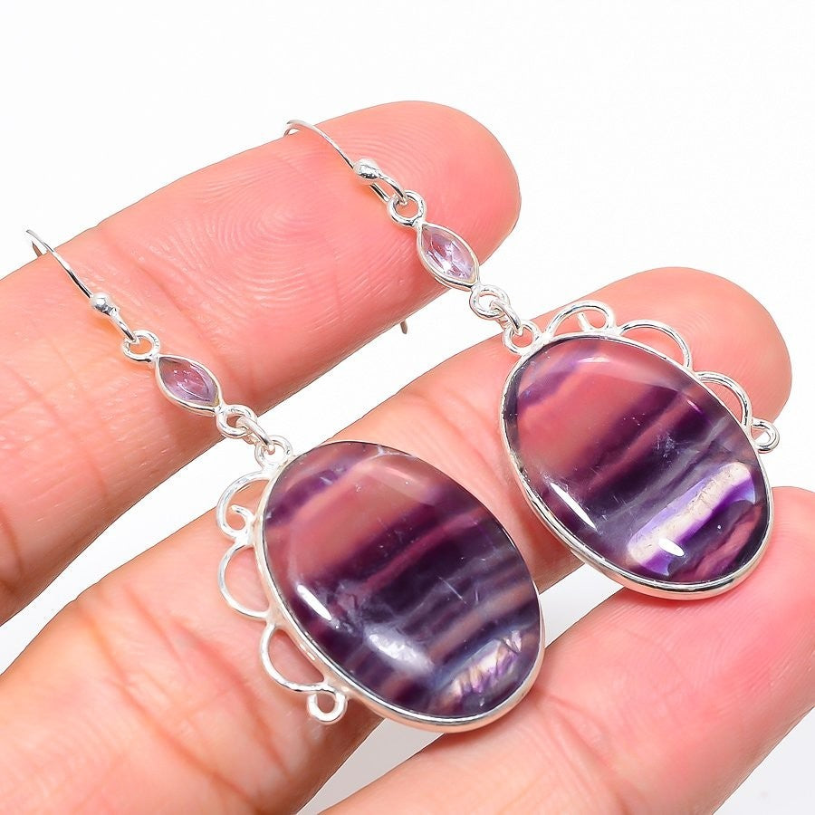 Natural Fluorite Engagement Dangling Hook Sister Earrings 925 Sterling Silver