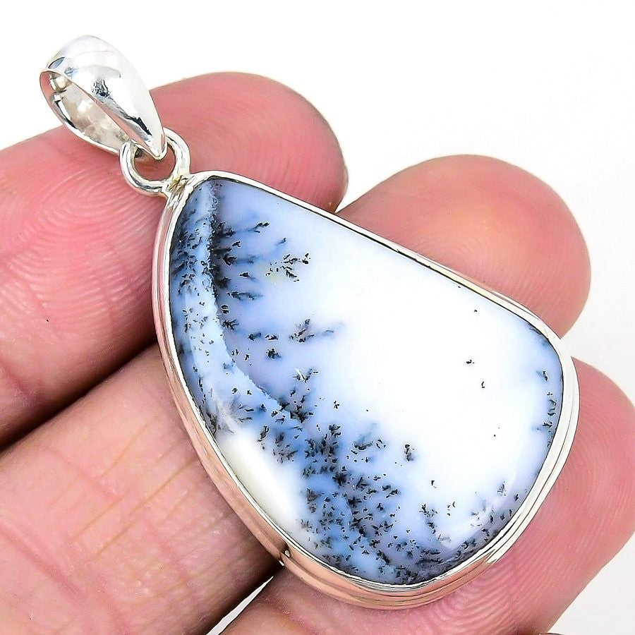 Natural Dendrite Opal Sister Engagement Unique New Pendant Solid Sterling Silver