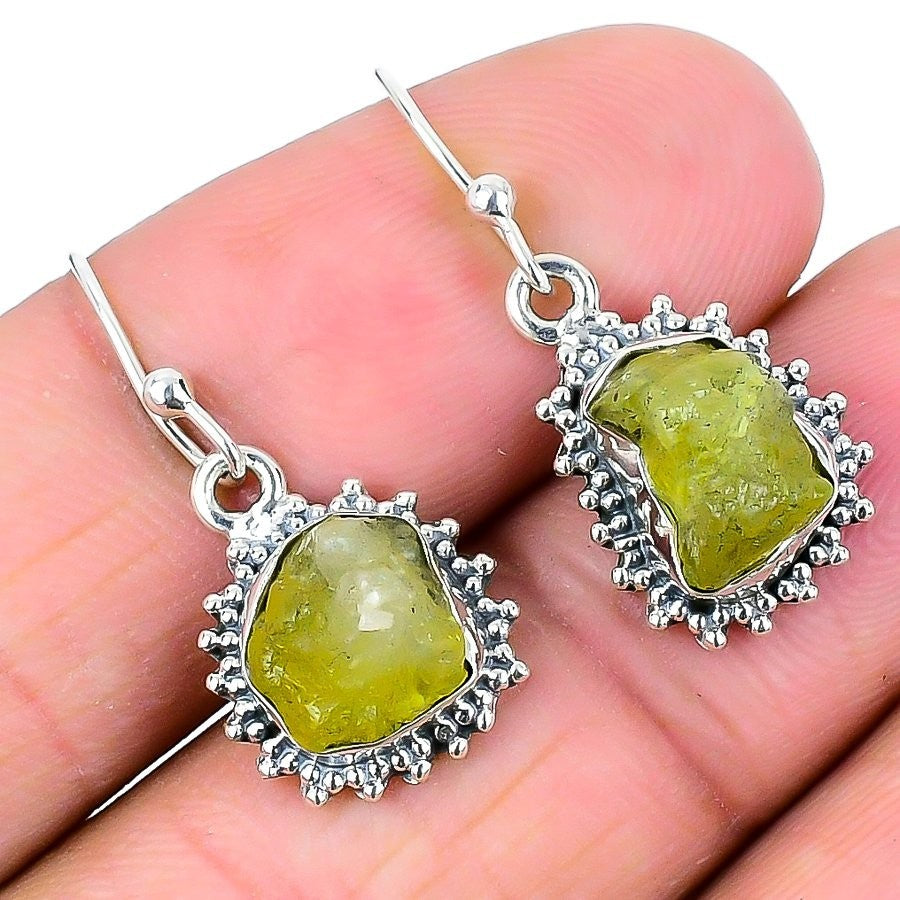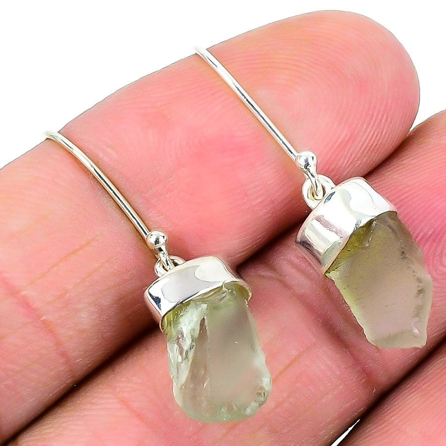 Natural Green Amethyst Sterling Silver Trendy Drop Hook Birthday Ethnic Earrings