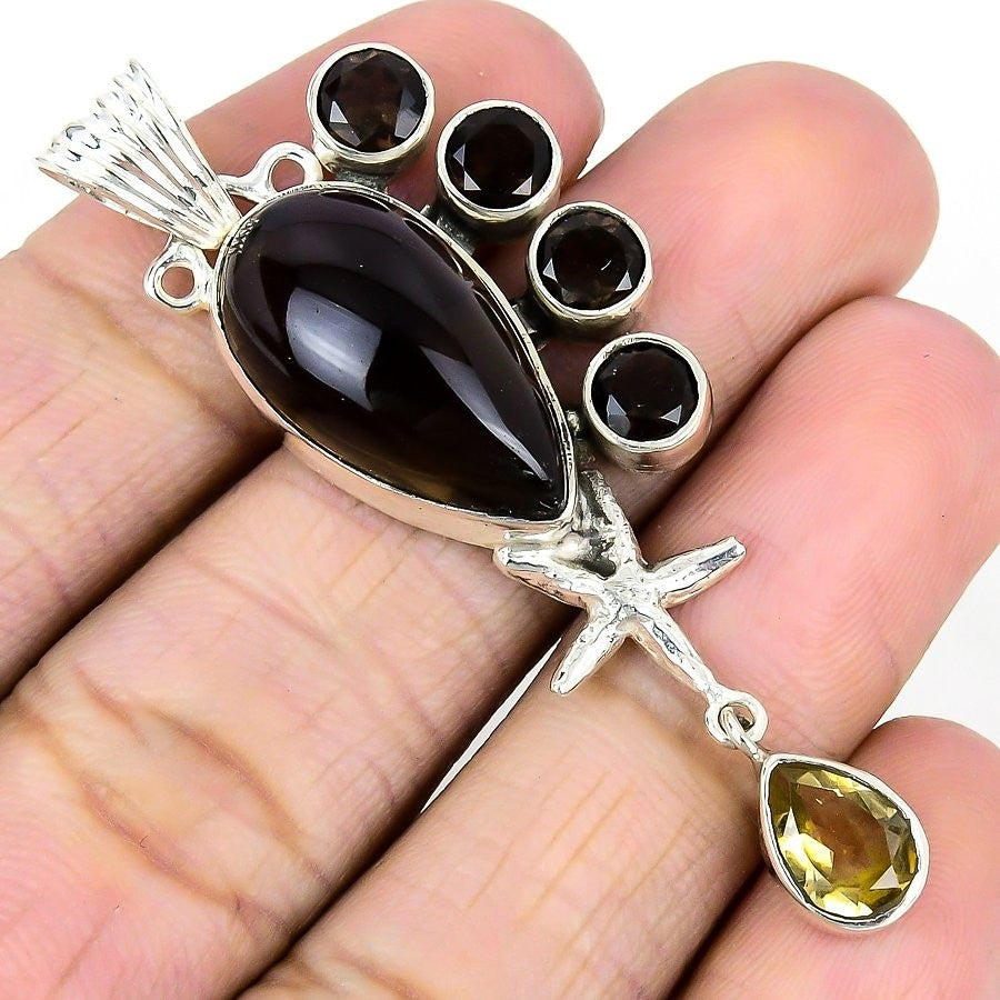 Smoky Quartz Stone Solid Sterling Silver Sister Daughters Day Pendant Jewelry