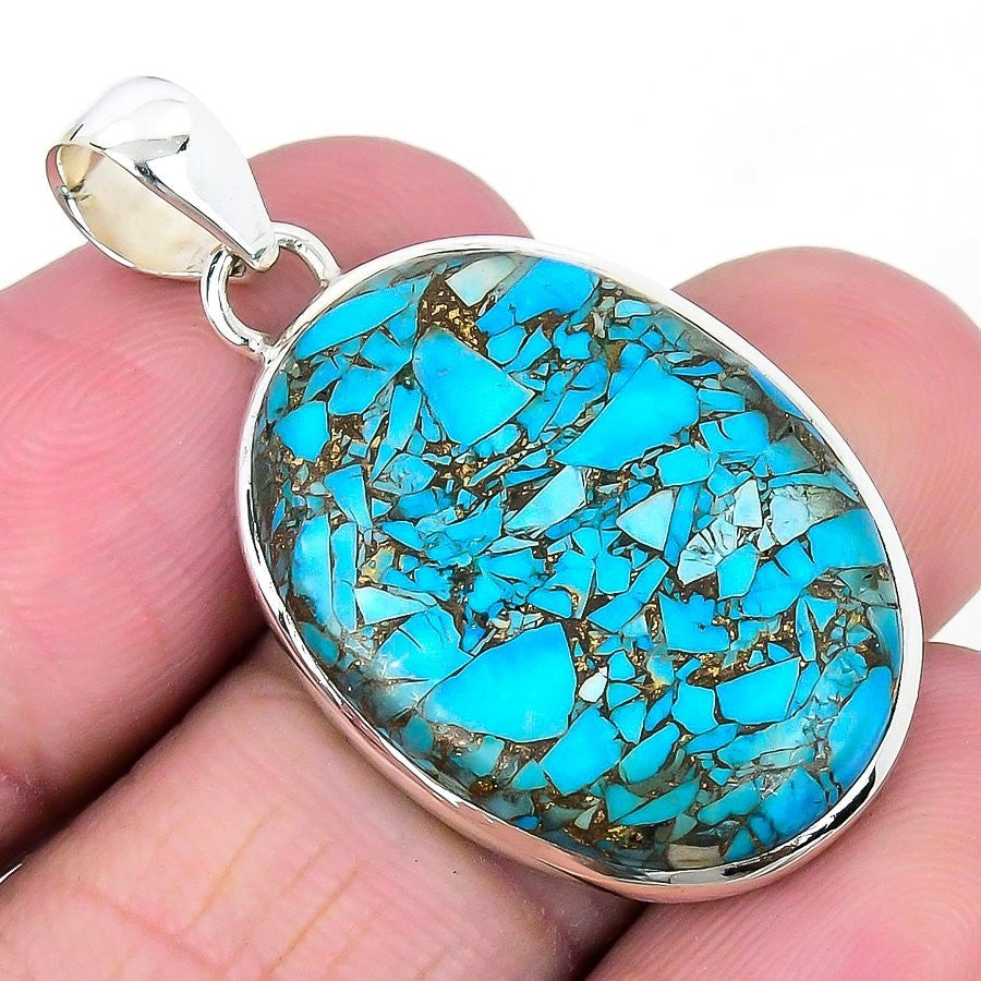Copper Blue Turquoise Stone Engagement December Pendant Jewelry Sterling Silver