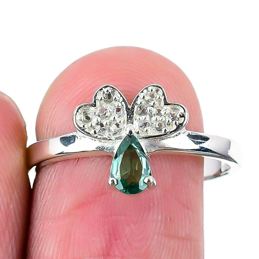 Aqua Apatite Stone Handcrafted Statement Boho Ring Size 9 Solid Sterling Silver