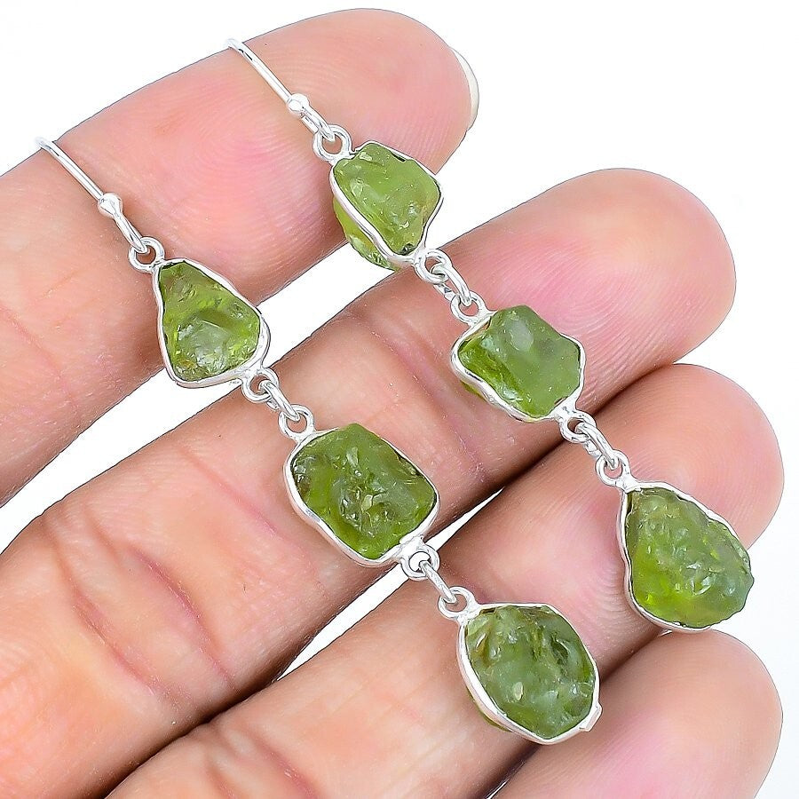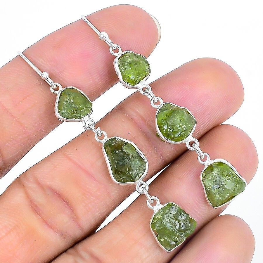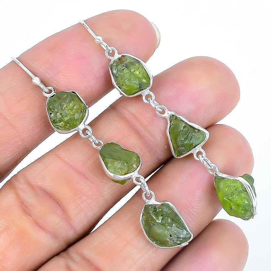 Peridot Druzy Gemstone Solid Sterling Silver Dangle Wife Engagement New Earrings