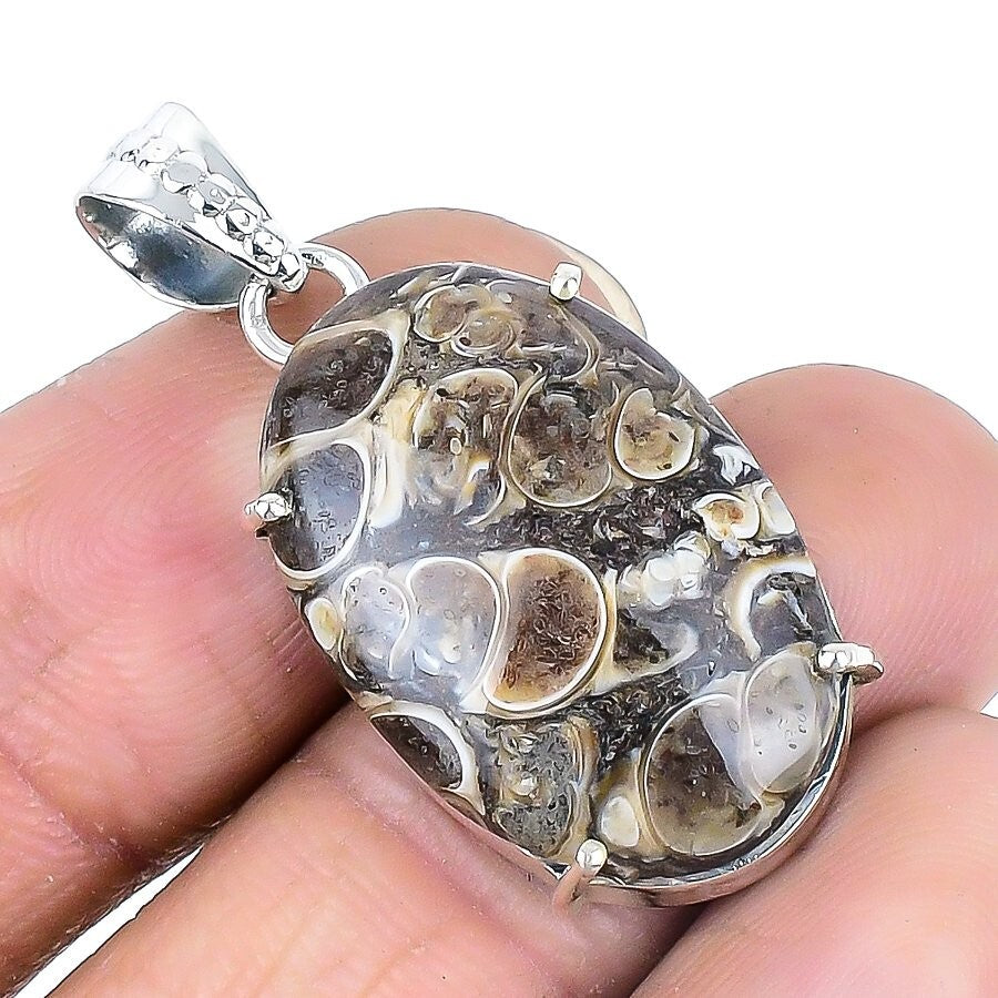 Turritella Fossil Gemstone 925 Sterling Silver Wife Engagement Pendant Jewelry