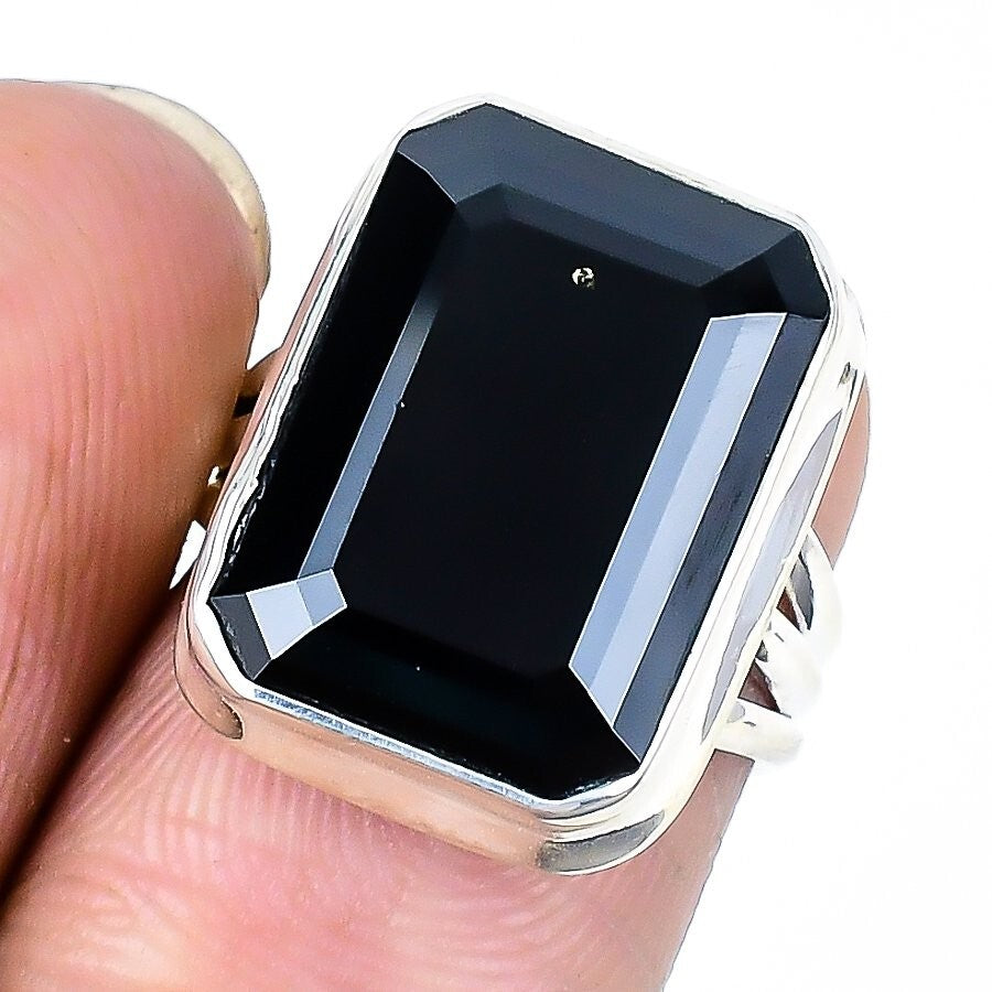 Black Spinel Gemstone 925Ā SolidĀ Silver Wedding Statement Mothers day Ring Size 6