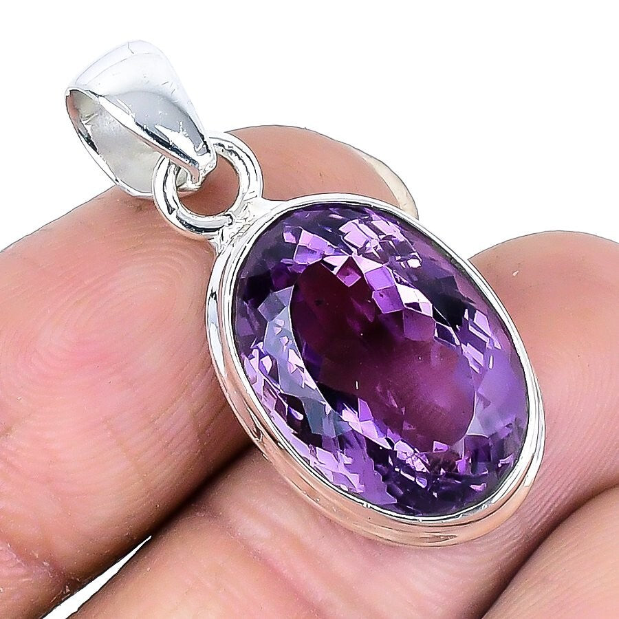 Natural Amethyst Faceted Sterling Silver Crown Chakra Ethnic Artisan New Pendant