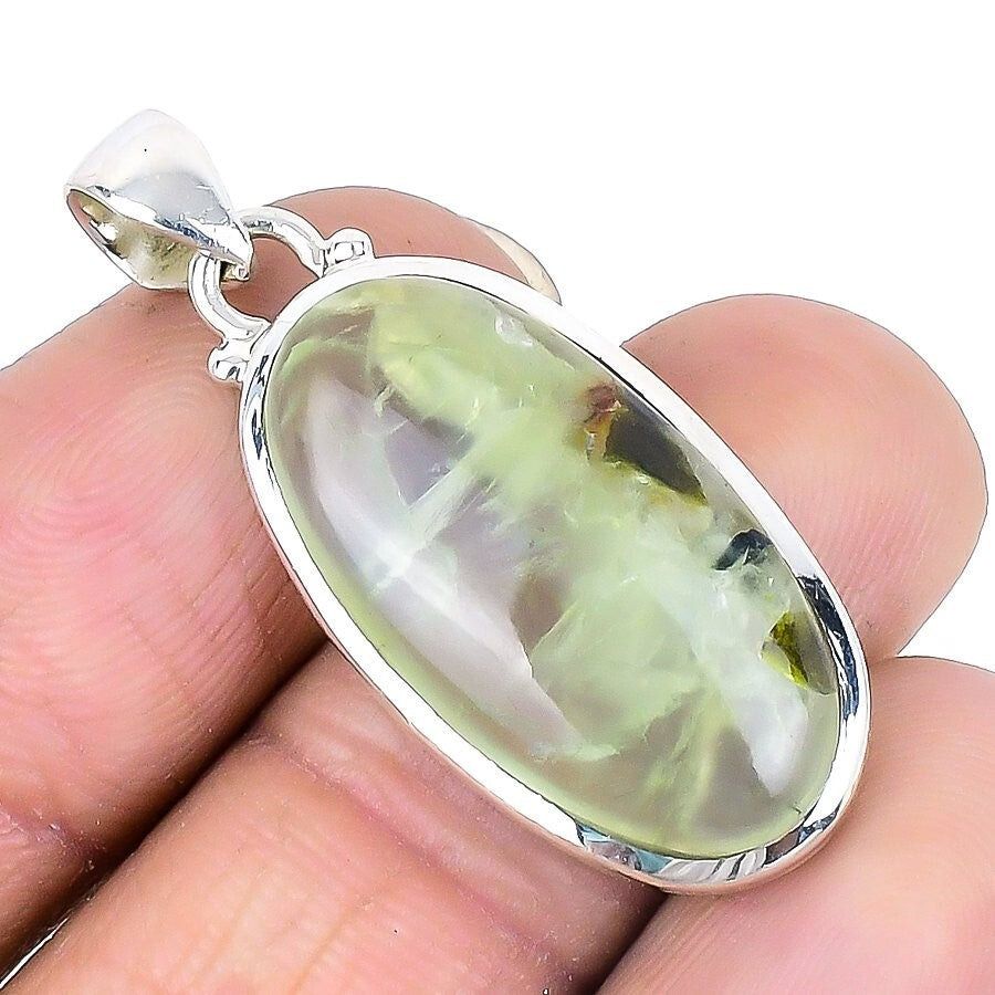 Prehnite Gemstone 925Ā SolidĀ Silver Sister Easter Trendy Birthday Wedding Pendant