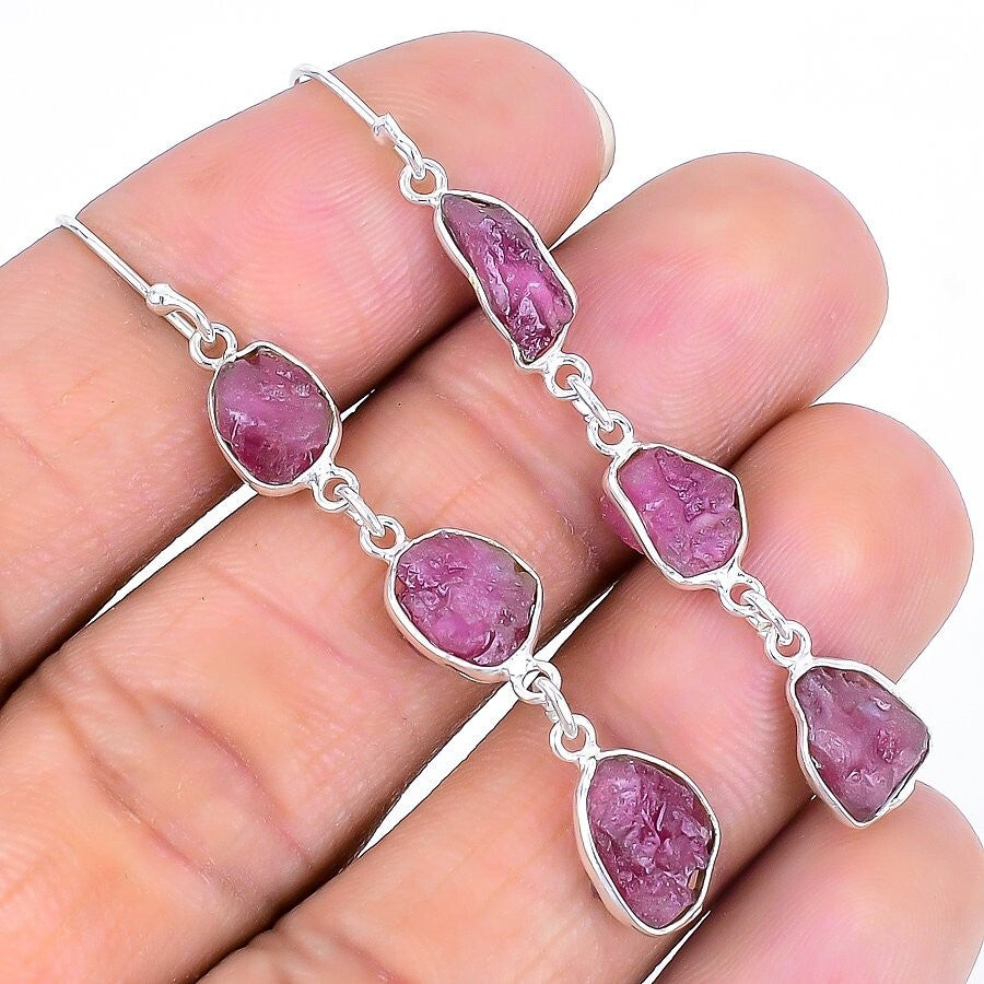 Pink Tourmaline Druzy Stone 925 Sterling Silver Drop Boho Wife Earrings Jewelry