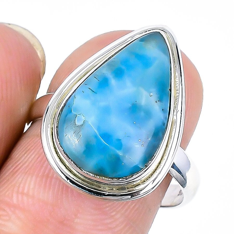 Natural Republic Larimar 925Ā SolidĀ Silver Statement Boho Handcrafted Mother Ring