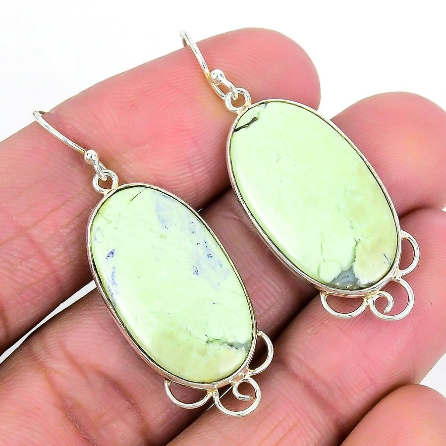 Boulder Chrysoprase Stone Sterling Silver Dangle Best Daughters Gift Earrings