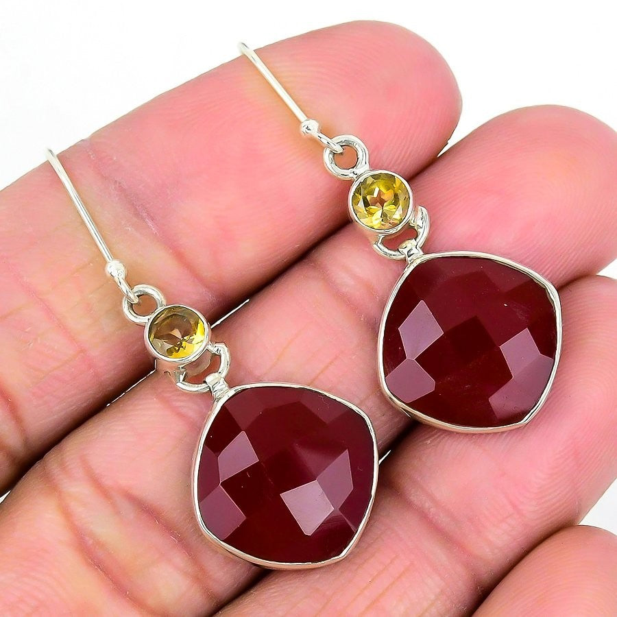 Natural Red Onyx 925 Silver Drop Artisan Best Daughters Gift Earrings Jewelry