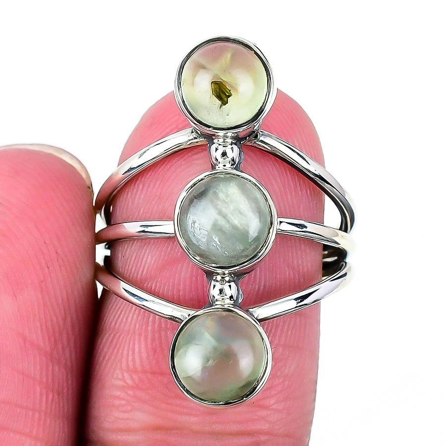 Prehnite Stone Cluster Channel Set Mother New Ring Jewelry Solid Sterling Silver