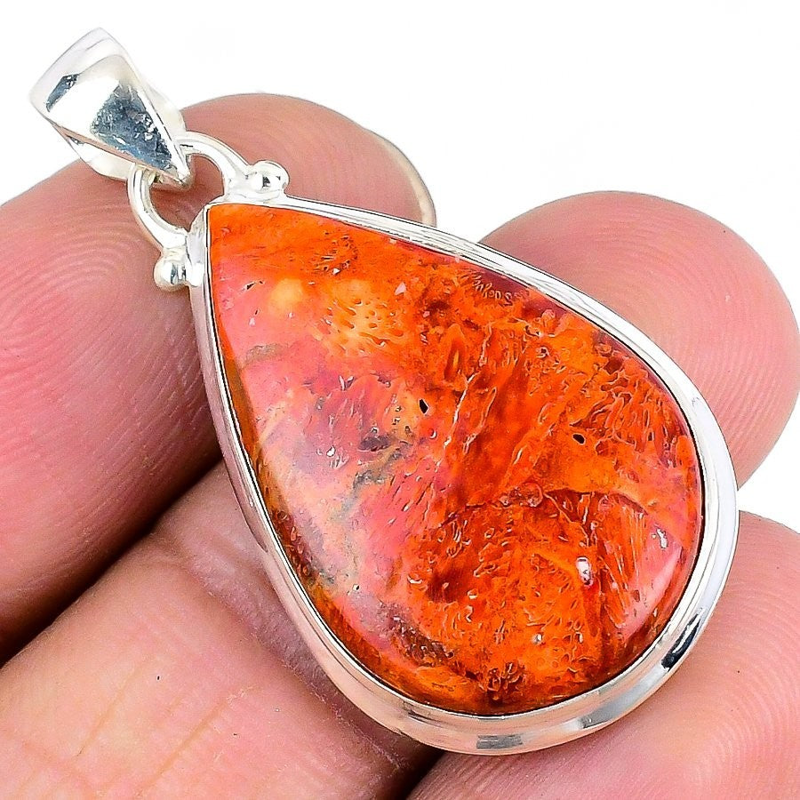 Natural Red Coral 925 Silver Unique Trendy Handmade Wife Wedding Pendant Jewelry