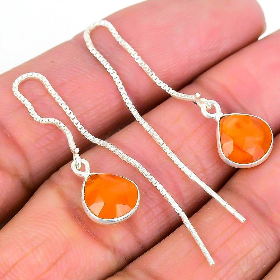Orange Carnelian Gemstone Solid Silver Wife Dangling Handmade Earrings Jewelry