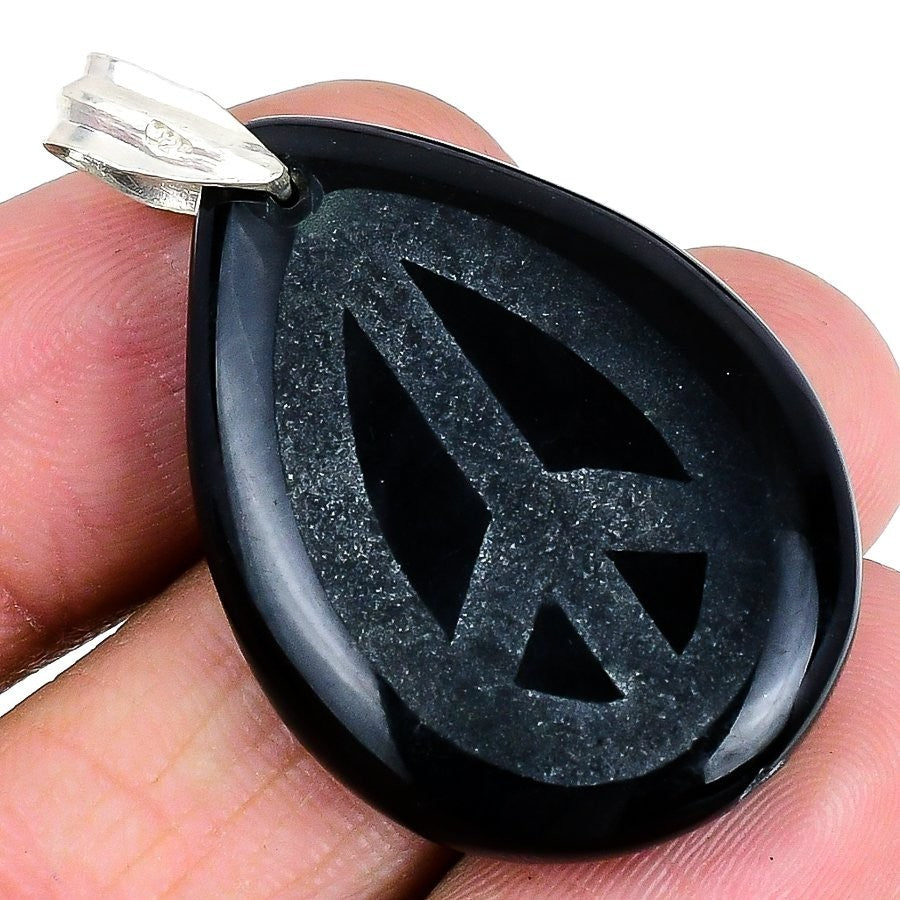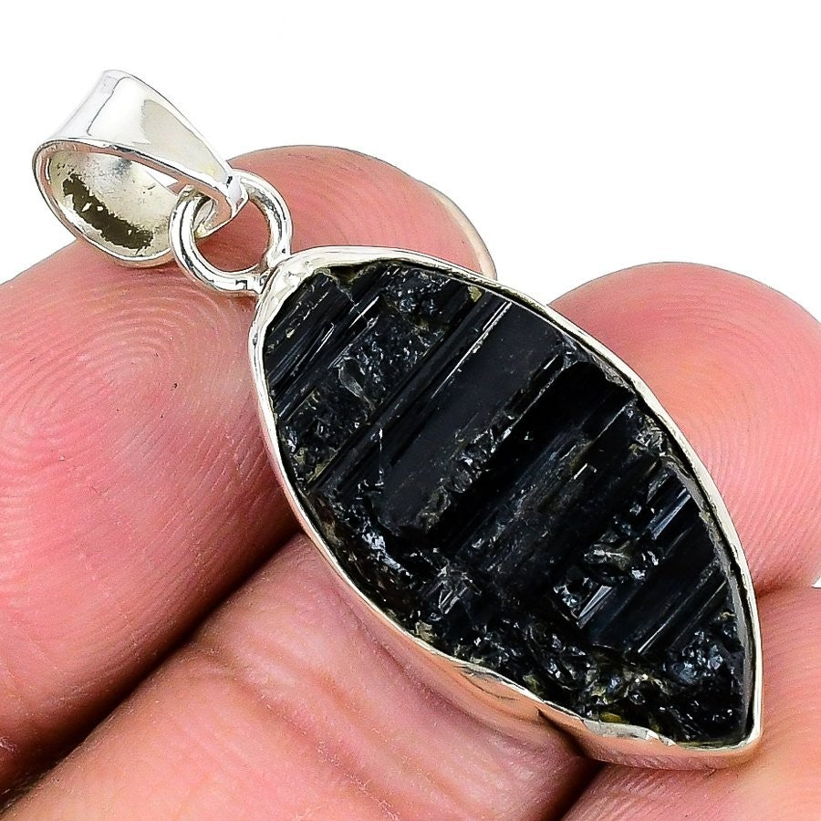 Natural Black Tourmaline Solid Sterling Silver Mother Wedding Pendant Jewelry
