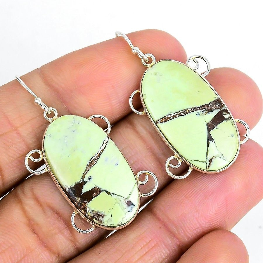 Natural Boulder Chrysoprase Sterling Silver Wedding Drop Dangle Earrings Jewelry
