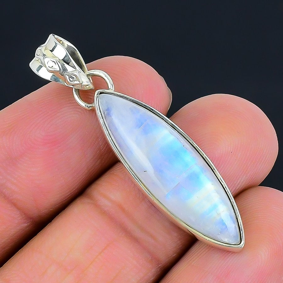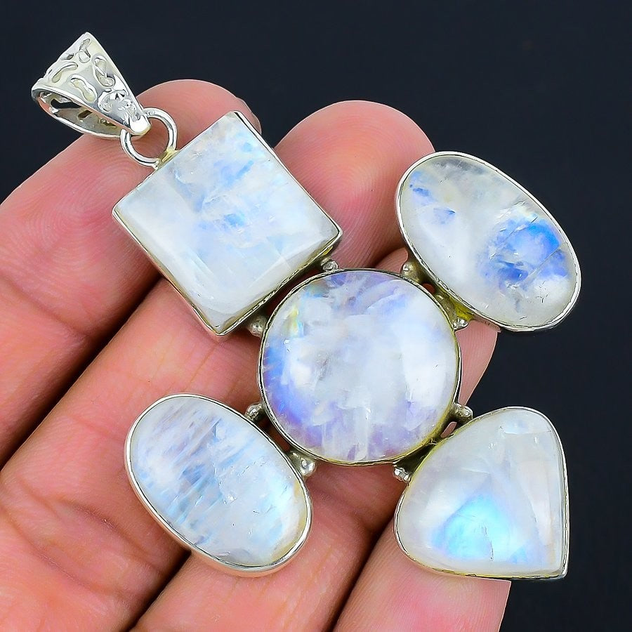 Natural Moonstone Engagement Mother June Pendant Jewelry Solid Sterling Silver