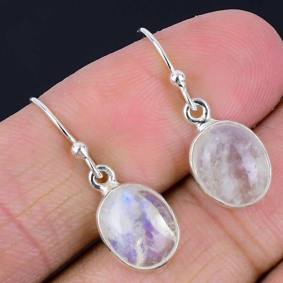 Rainbow Moonstone Stone Birthday Anniversary Boho Drop Hook Earrings 925 Silver