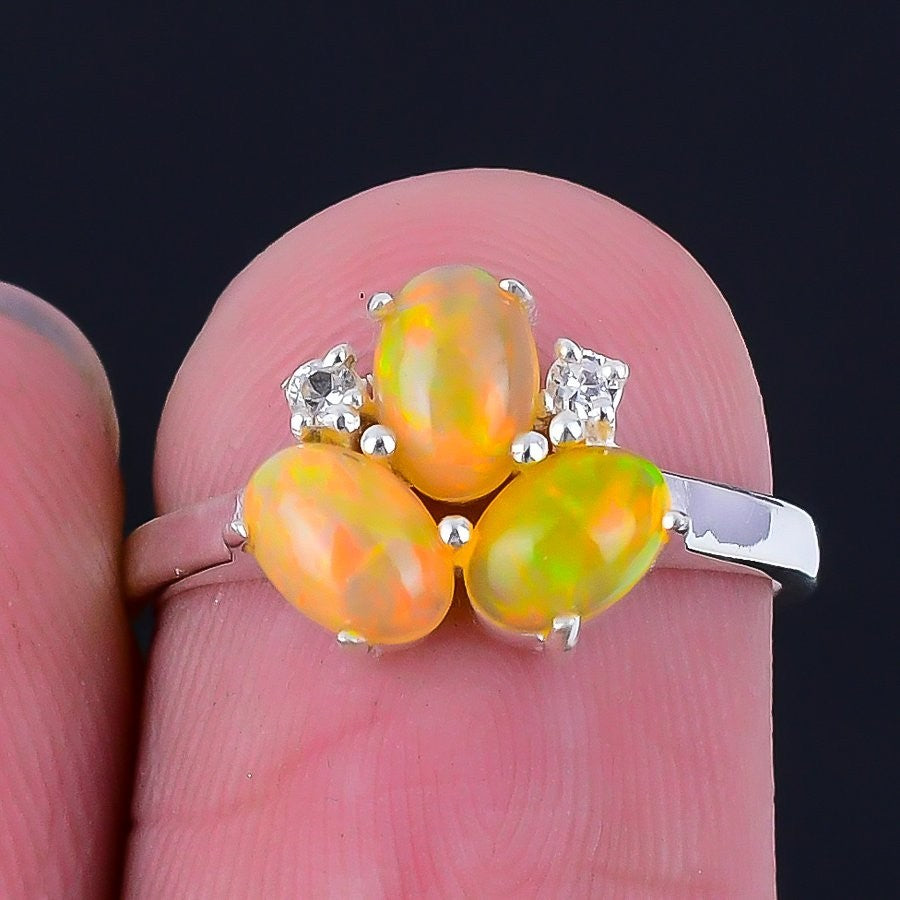 Natural Ethiopian Opal Solid Sterling Silver Daughters Day Cluster Ring Size 6