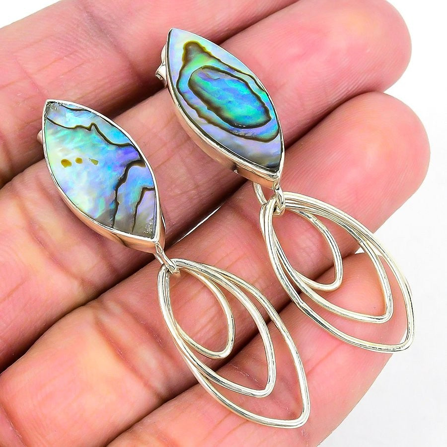 Abalone Shell Gemstone Solid Silver Boho Hook Dangling Wedding Mother Earrings