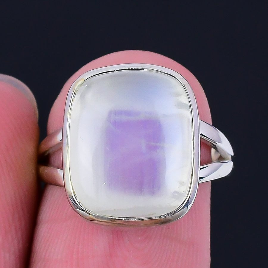 Rainbow Moonstone Gemstone Sterling Silver Birthday Cluster Ring Jewelry Size 9