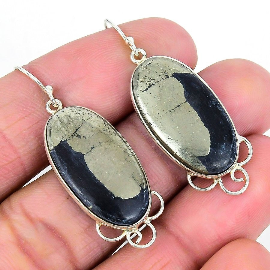 Natural Pyrite Agate Engagement Anniversary Dangle Earrings Jewelry Solid Silver