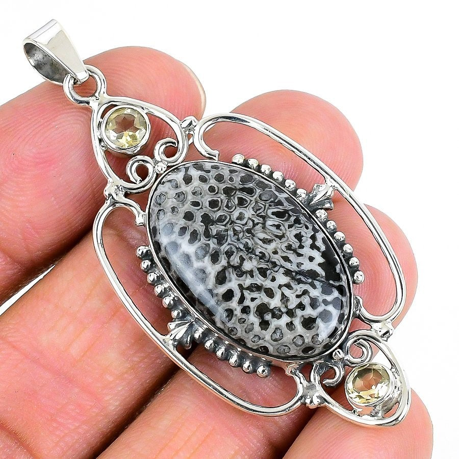 Stingray Coral Gemstone Solid Sterling Silver Wife Bezel Wedding Pendant Jewelry
