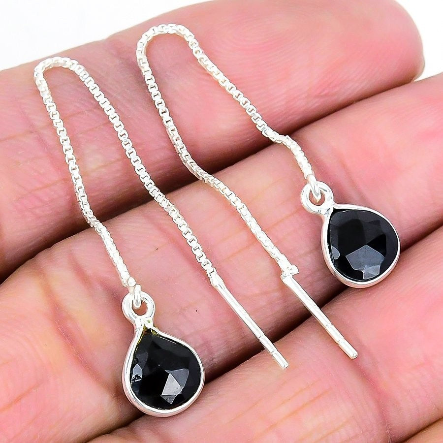 Black Spinel Stone Daughters Day Sister Dangling Unique Earrings Sterling Silver