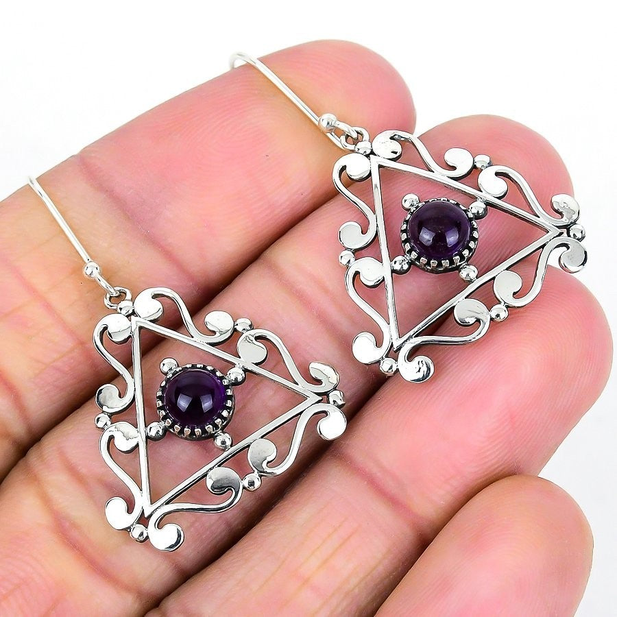 Sage Amethyst Gemstone 925 Sterling Silver Channel Set Birthday Drop Earrings