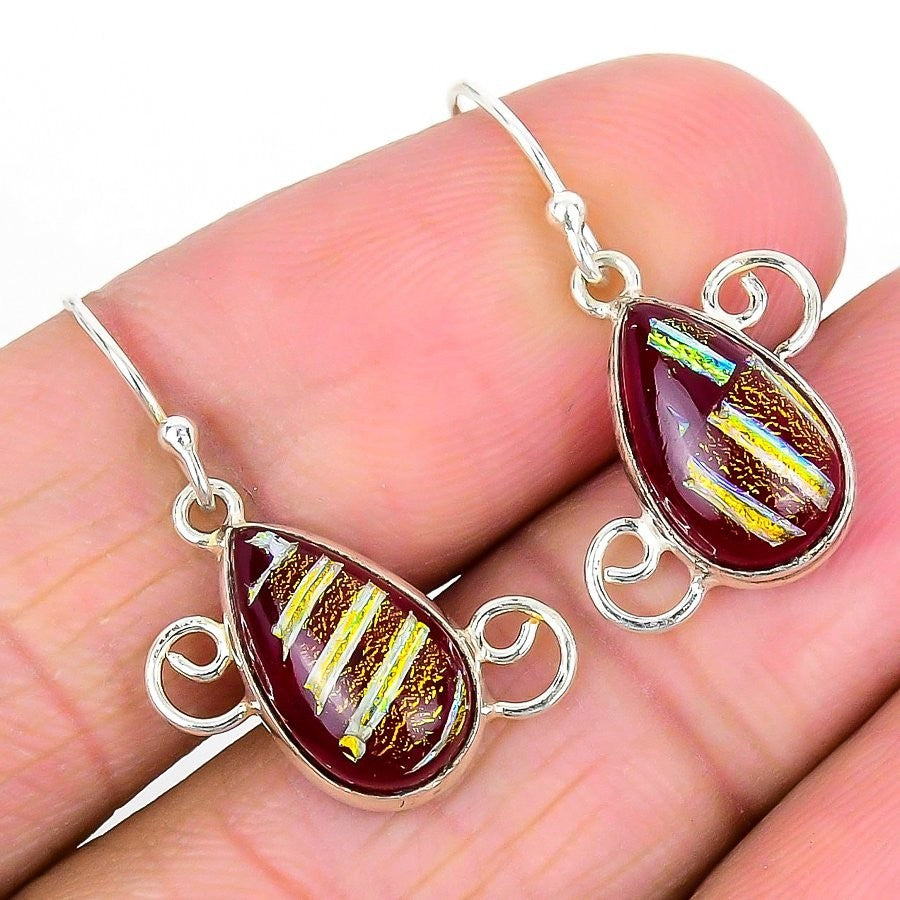 Natural Mexican Dico Glass 925 Silver Drop Dangle Daughters Day Earrings Jewelry