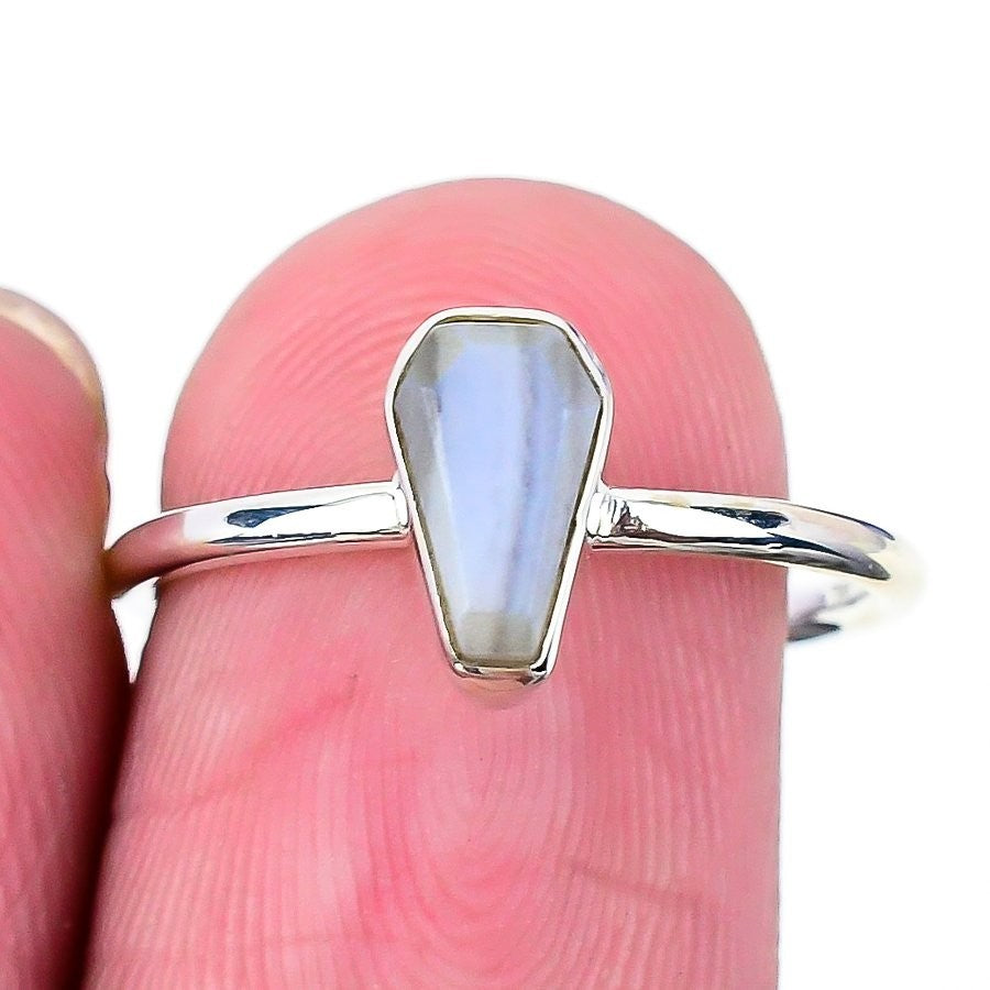 Blue Lace Agate Stone Solid Sterling Silver Cluster Anniversary Wife Ring Size 8